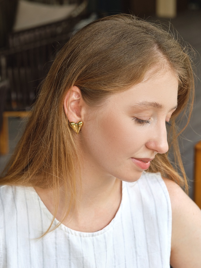 Откройте для себя очарование и изящество с набором серёжек, который станет настоящим акцентом в вашем образе. Эти украшения, выполненные в золотистом цвете, идеально сочетают в себе минимализм и романтику, благодаря своим оригинальным формам в виде сердца.