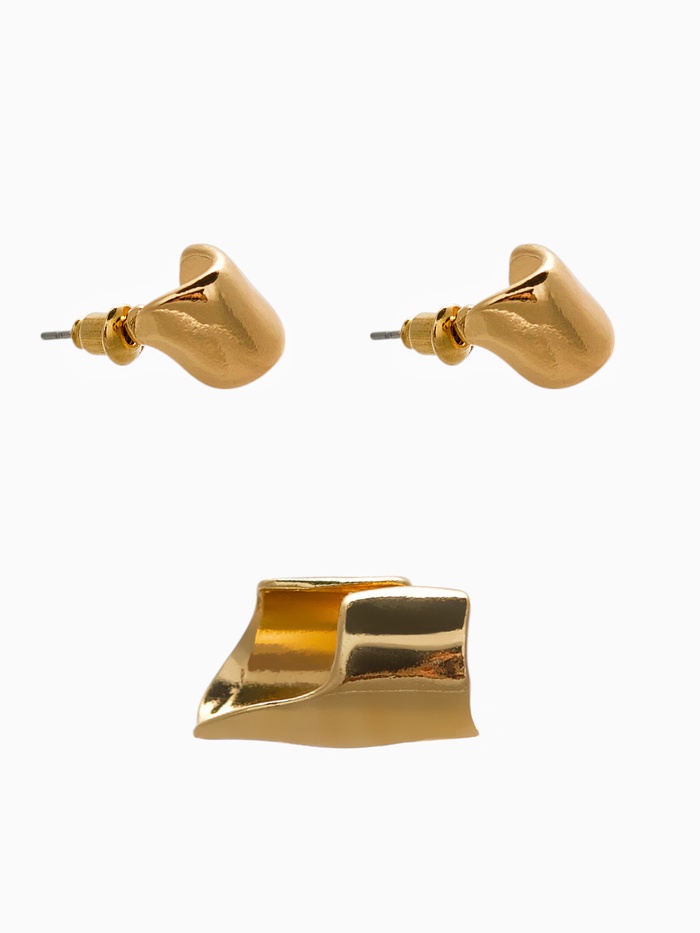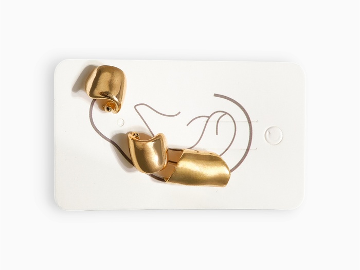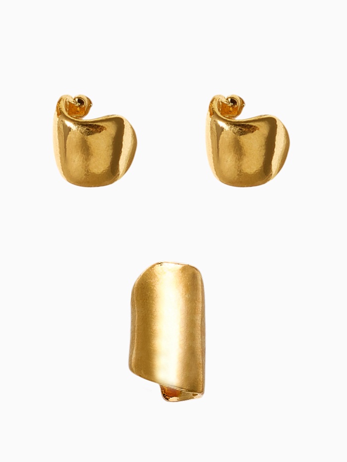 Каждое украшение выполнено из качественного металла с золотистым покрытием, подчёркивающим утончённость и современность дизайна. Отсутствие вставок делает аксессуары максимально лаконичными, что идеально вписывается в концепцию минимализма и позволяет легко комбинировать их с другими элементами гардероба.