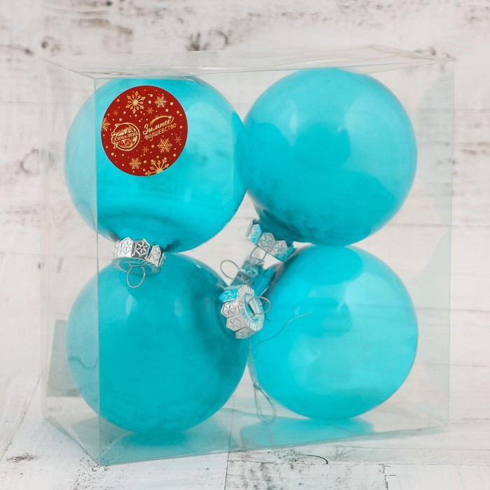 Ёлочные игрушки «Туман», шары новогодние, d=8 см, набор 4 шт., голубой