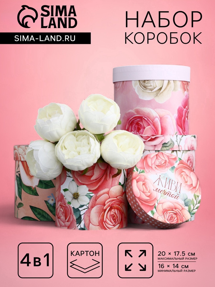 Не упустите возможность подарить радость своим близким — заказывайте набор шляпных коробок для цветов 4 в 1 и создавайте незабываемые моменты!