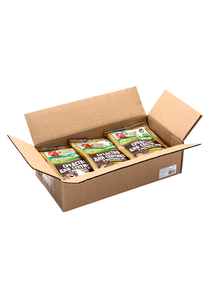 Средство для очистки септиков и выгребных ям. Оно разработано на основе натуральных компонентов и не содержит вредных химических веществ, что делает его безопасным для окружающей среды и здоровья человека.