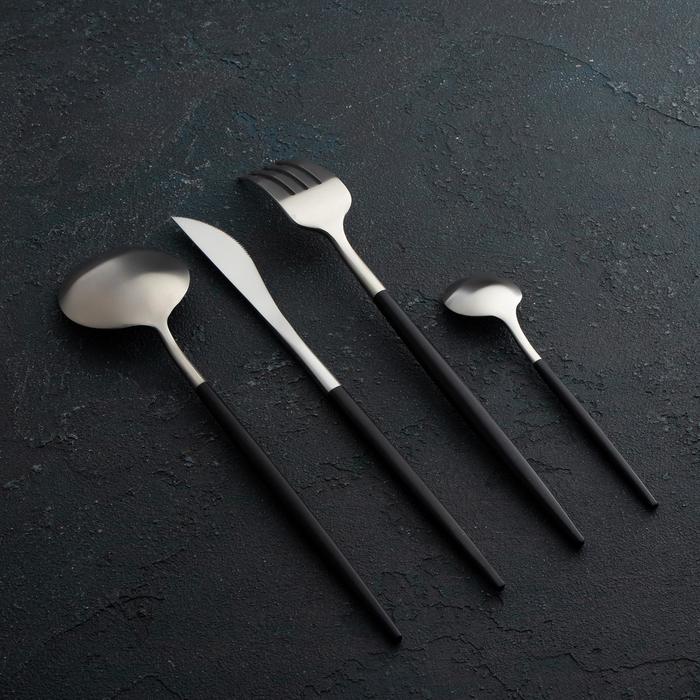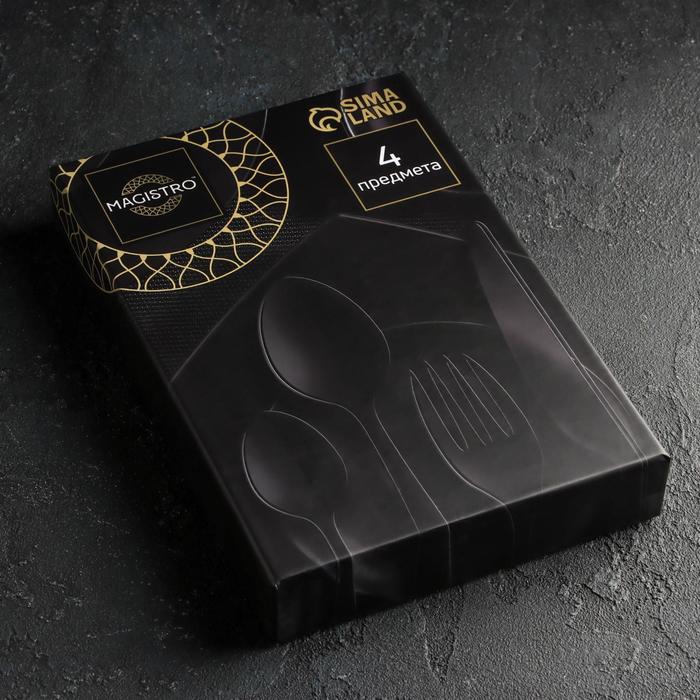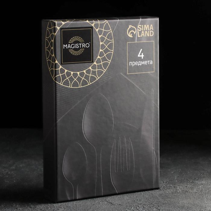 Набор столовых приборов из нержавеющей стали Magistro «Фолк», 4 предмета, цвет металла серебряный, чёрные ручки