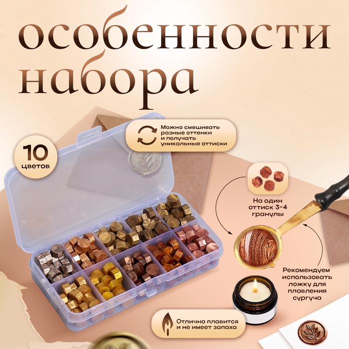 Набор сургуча "Все оттенки золотого" 10 цветов 12,7х6,5х2 см
