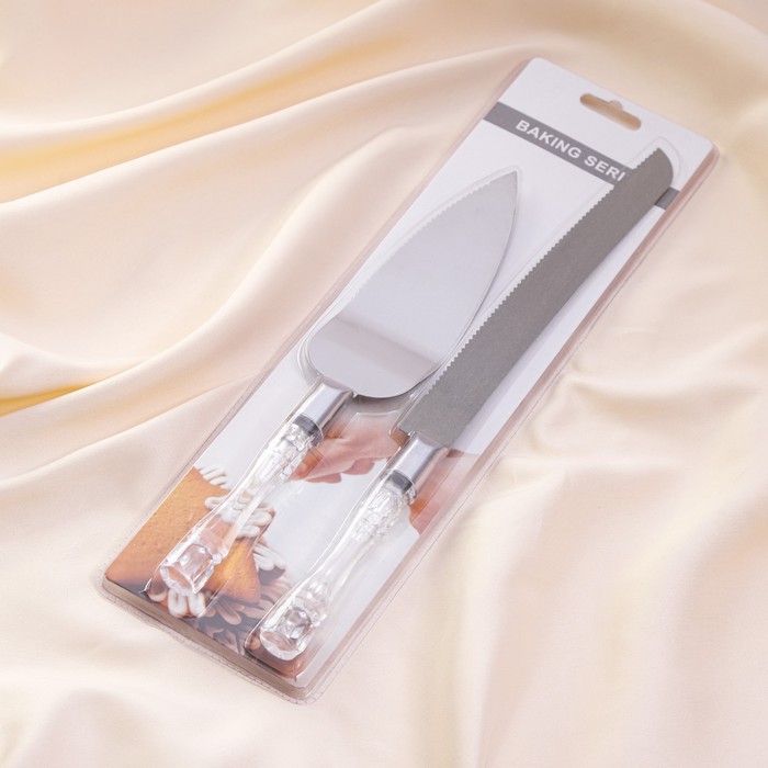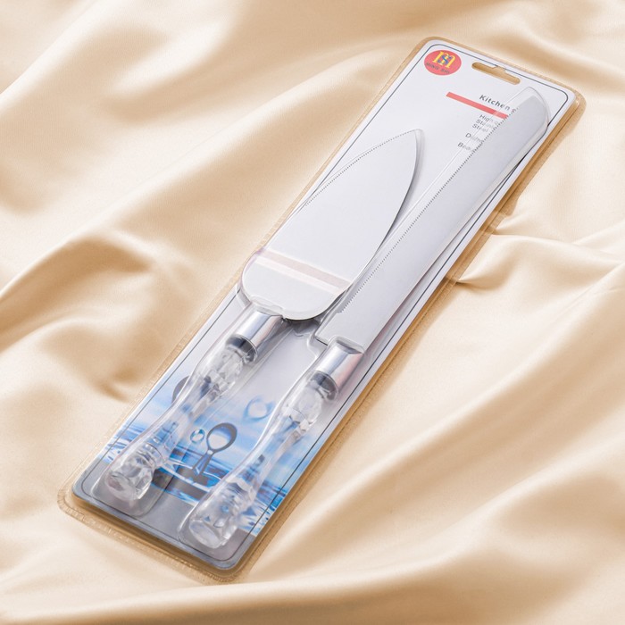 Важная часть свадебного застолья – праздничный десерт в конце мероприятия. Кондитерский набор поможет красиво и аккуратно разделить между гостями аппетитное лакомство. Большим ножом удобно нарезать торт, не испачкав руки, а широкой лопаткой комфортно раскладывать кусочки в порционные тарелки.