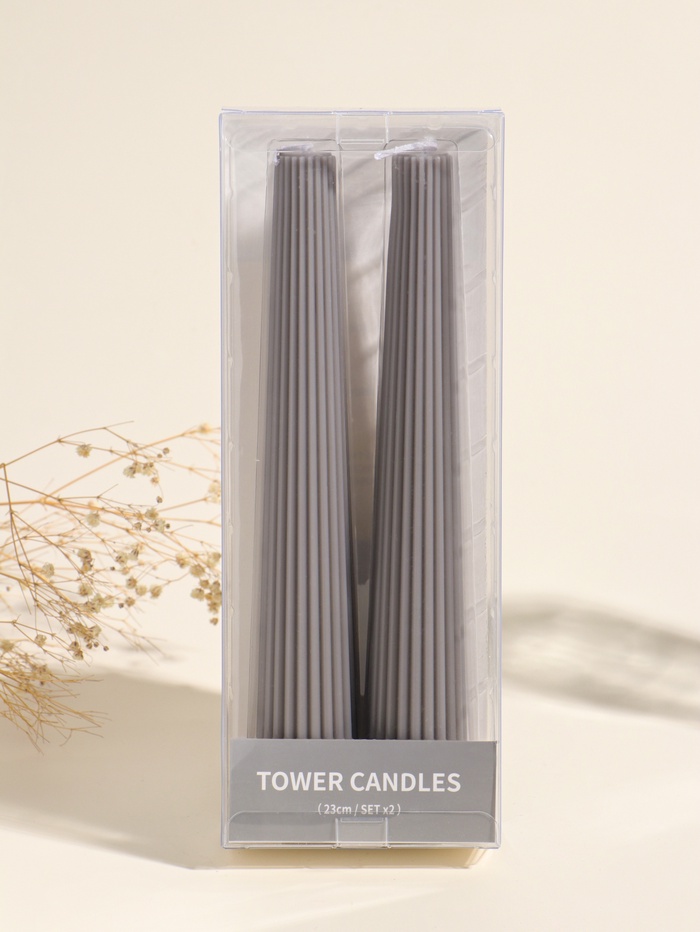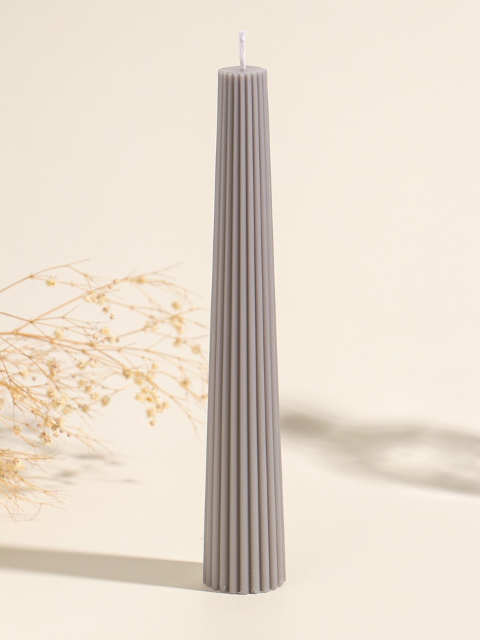 Этот набор из двух высоких конических свечей создаёт атмосферу спокойствия и утончённости. Строгие линии и глубокий серый оттенок «асфальт» придают интерьеру современный акцент, делая свечи универсальным элементом декора для любого времени года.