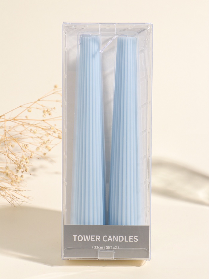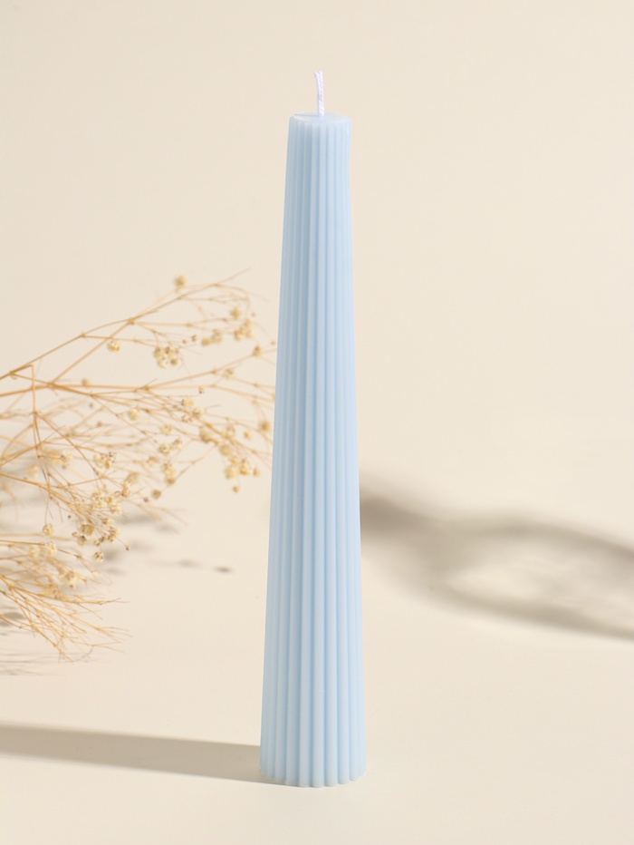 Набор из двух высоких голубых свечей создаёт атмосферу спокойствия и уюта. Их стройная коническая форма и нежный оттенок напоминают о зимнем небе или морской глади, добавляя интерьеру лёгкости и стиля. Свечи универсальны — они станут элегантным дополнением к романтическому ужину, помогут расслабиться после долгого дня или зададут тон праздничному столу.