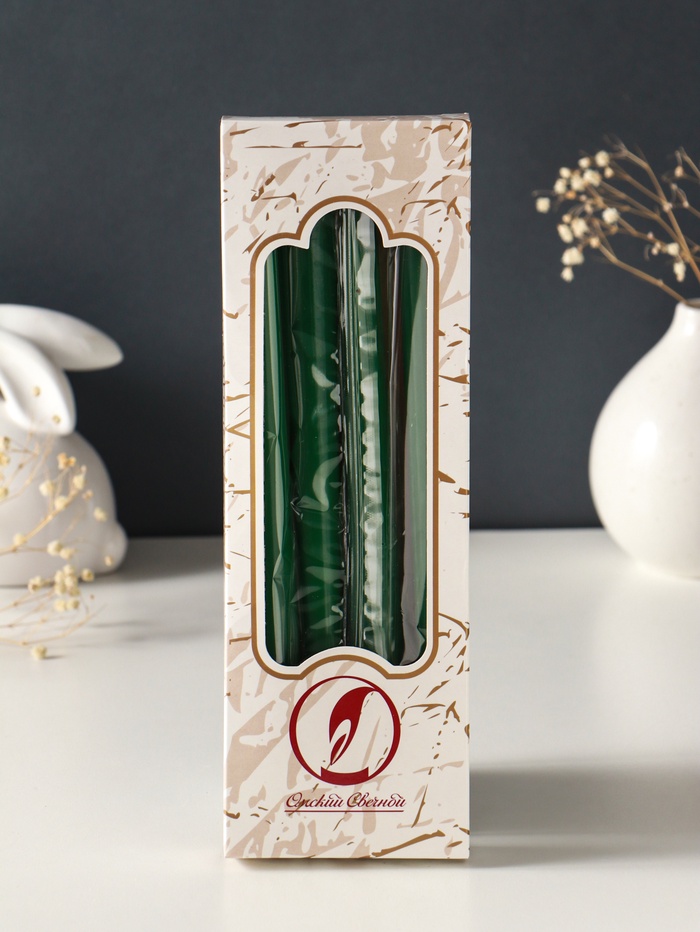 Набор свечей античных, 2.3×24.5 см, 5 ч, 55 г, 4 шт., тёмно-зелёный