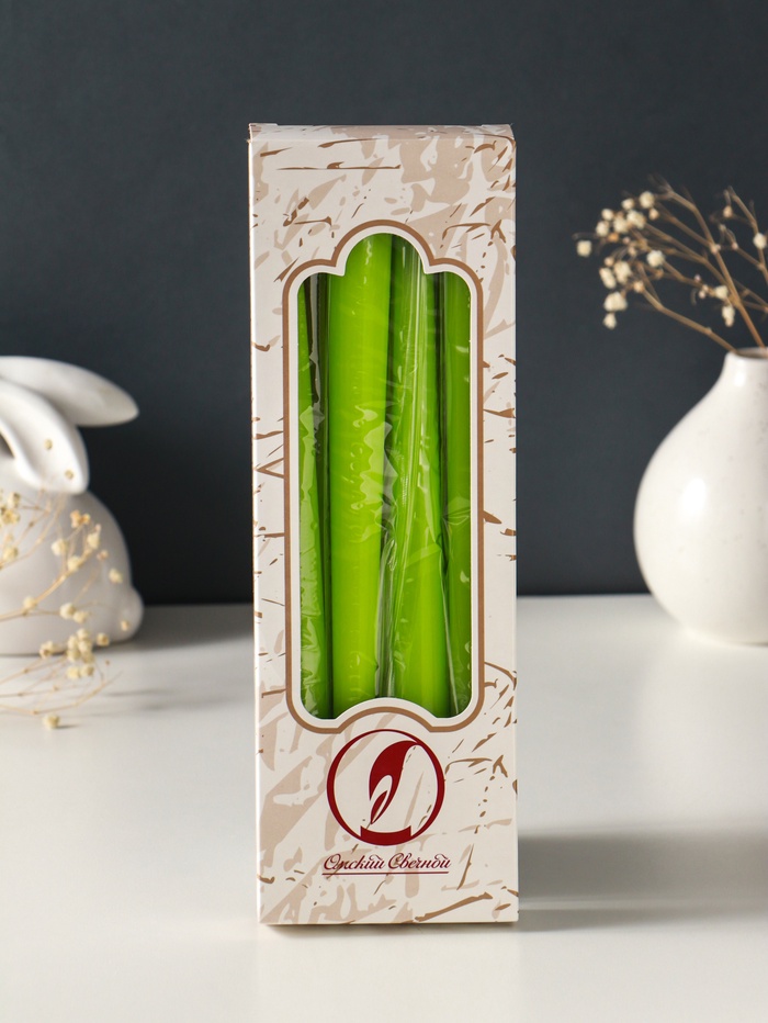 Набор свечей античных, 2.3×24.5 см, 5 ч, 55 г, 4 шт., зелёный