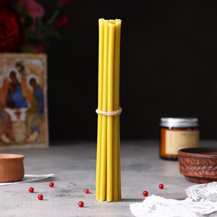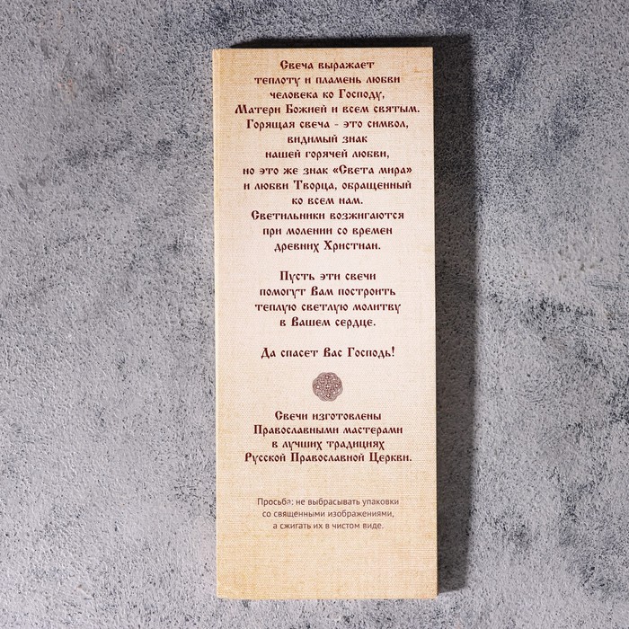 Эту свечу вы сможете использовать как в церковном, так и в домашнем обиходе для религиозных обрядов. Она не содержит ароматических примесей и красителей.
