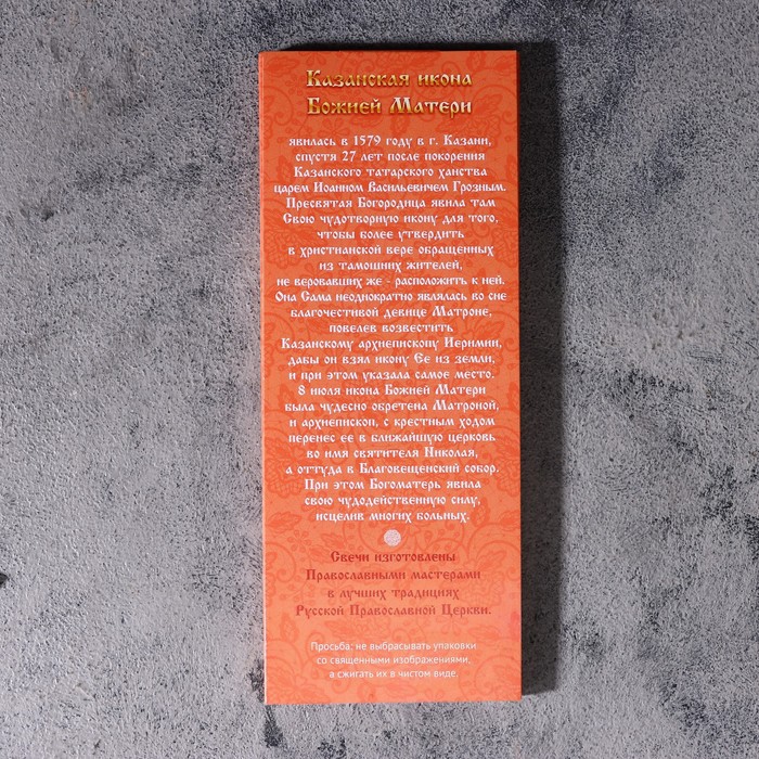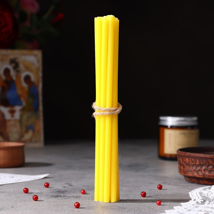 Эту свечу вы сможете использовать как в церковном, так и в домашнем обиходе для религиозных обрядов. Она не содержит ароматических примесей и красителей.