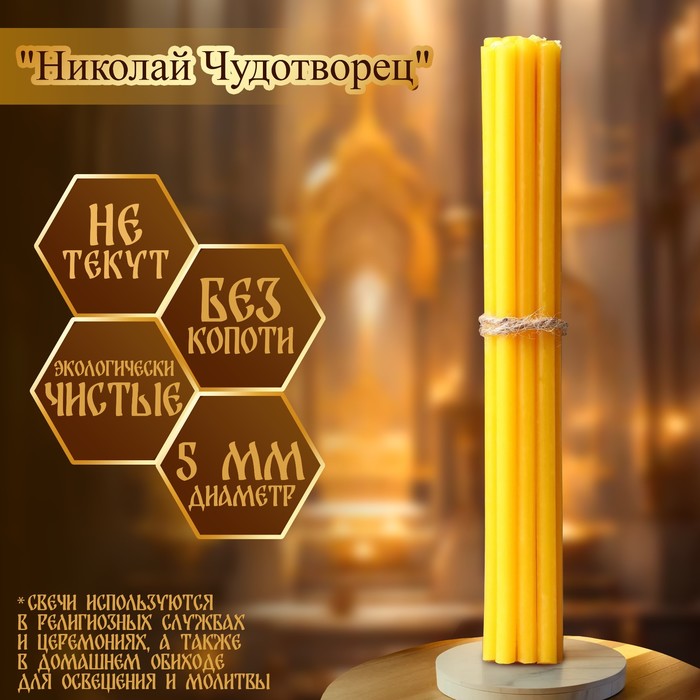 Эту свечу вы сможете использовать как в церковном, так и в домашнем обиходе для религиозных обрядов. Она не содержит ароматических примесей и красителей.