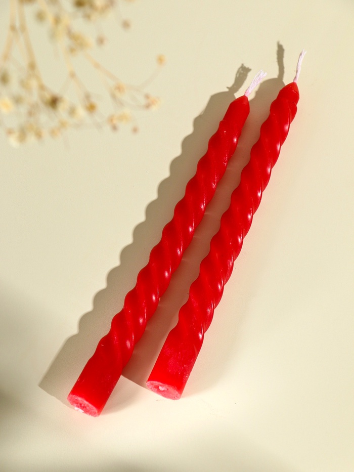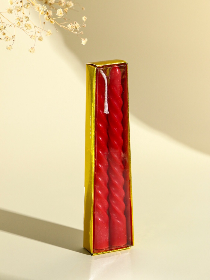 Набор свечей витых, 1.5×15 см, 2 шт., красный
