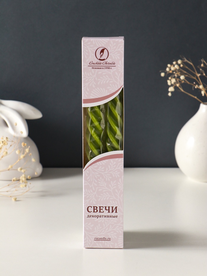 Набор свечей витых, 2.3×24.5 см, 5 ч, 50 г, 2 шт., оливковый