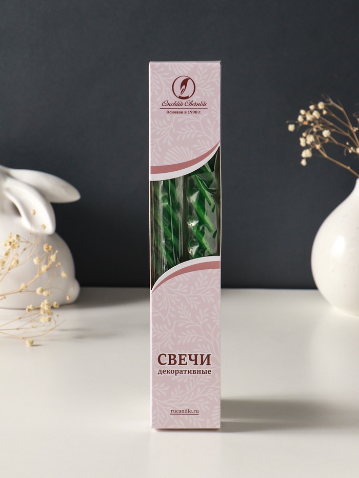 Набор свечей витых, 2.3×24.5 см, 5 ч, 50 г, 2 шт., тёмно-зелёный