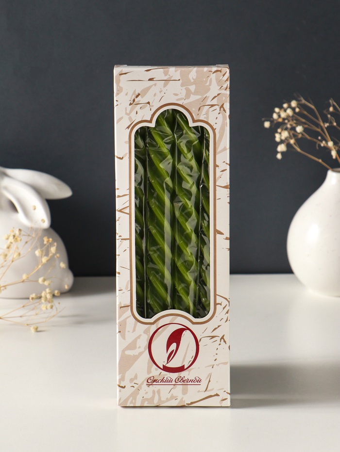Набор свечей витых, 2.3×24.5 см, 5 ч, 50 г, 4 шт., тёмно-зелёный