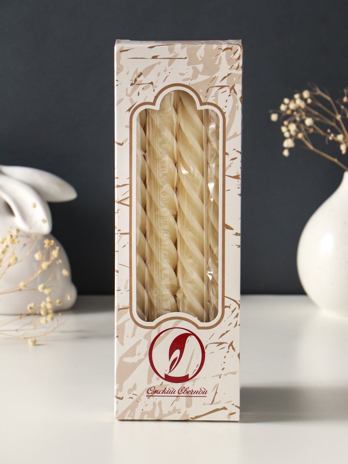 Набор свечей витых, 2.3×24.5 см, 5 ч, 50 г, 4 шт., слоновая кость