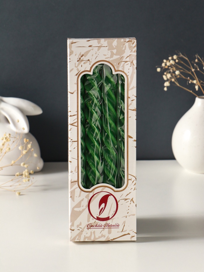Набор свечей витых, 2.3×24.5 см, 5 ч, 50 г, 4 шт., тёмно-зелёный