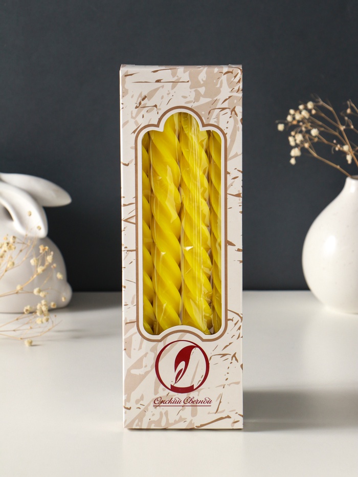 Набор свечей витых, 2.3×24.5 см, 5 ч, 50 г, 4 шт., жёлтый