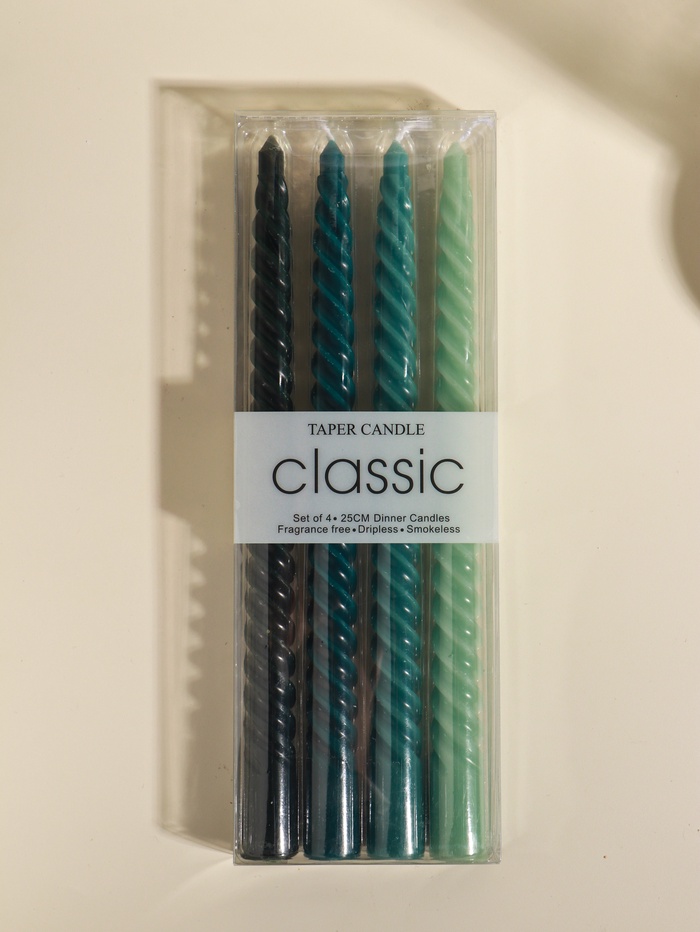 Набор свечей витых, 2х25 см, 4 шт, палитра зелёного 25,5х8,8х2,4 см