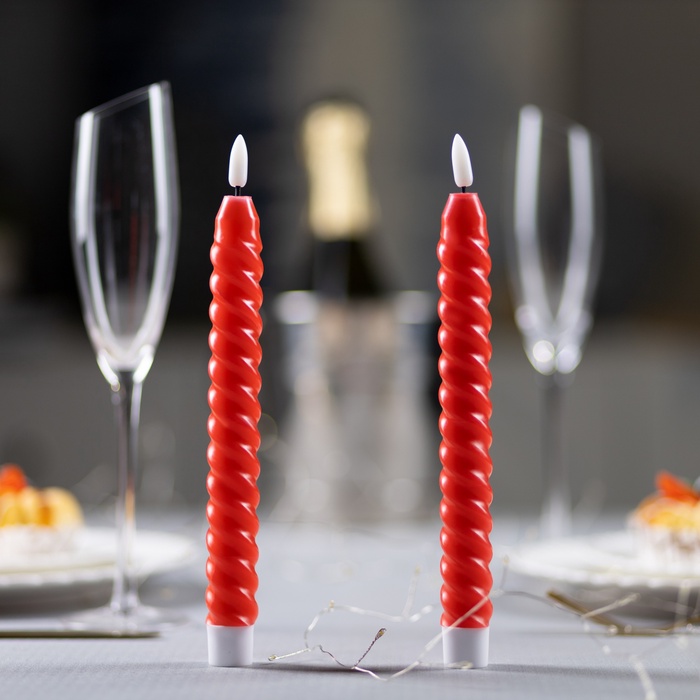 Набор светодиодных свечей, 2 шт., красные, 2×25×2 см, пластик, воск, от батареек АААх2, свечение тёплое белое