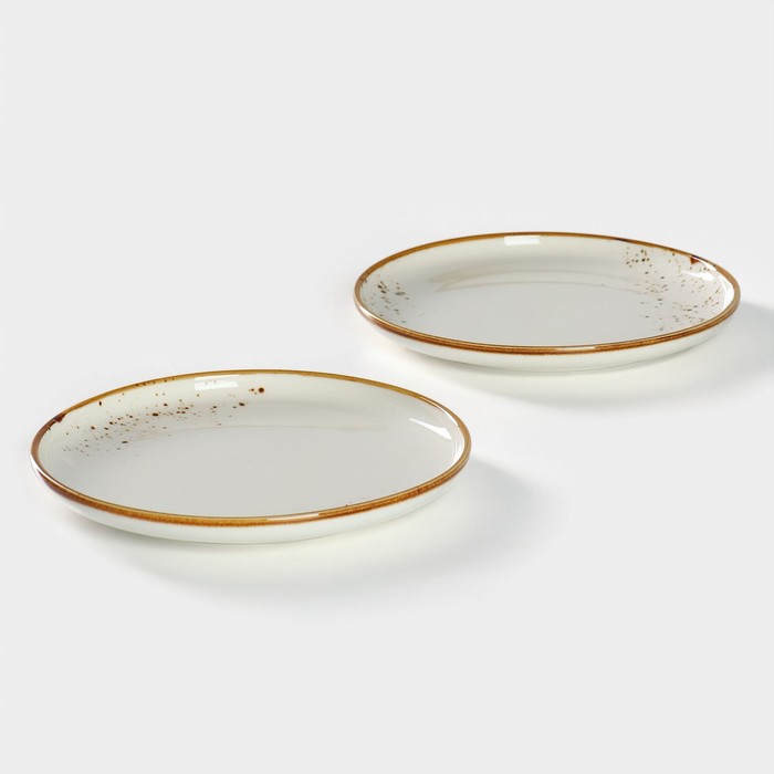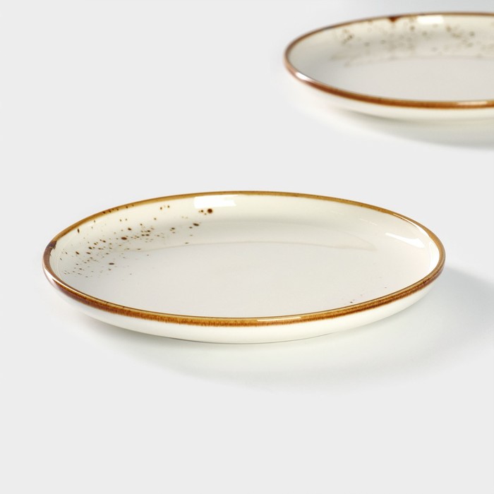 Эти тарелки не кричат о себе, но создают фон, на котором десерт выглядит выразительнее. Их размер удобен для сервировки парных порций — будь то крем-брюле в кокотницах или просто два пирожных. Белый фарфор с едва заметной крапинкой сохраняет нейтральность и при этом добавляет характер, не споря с оформлением блюда.