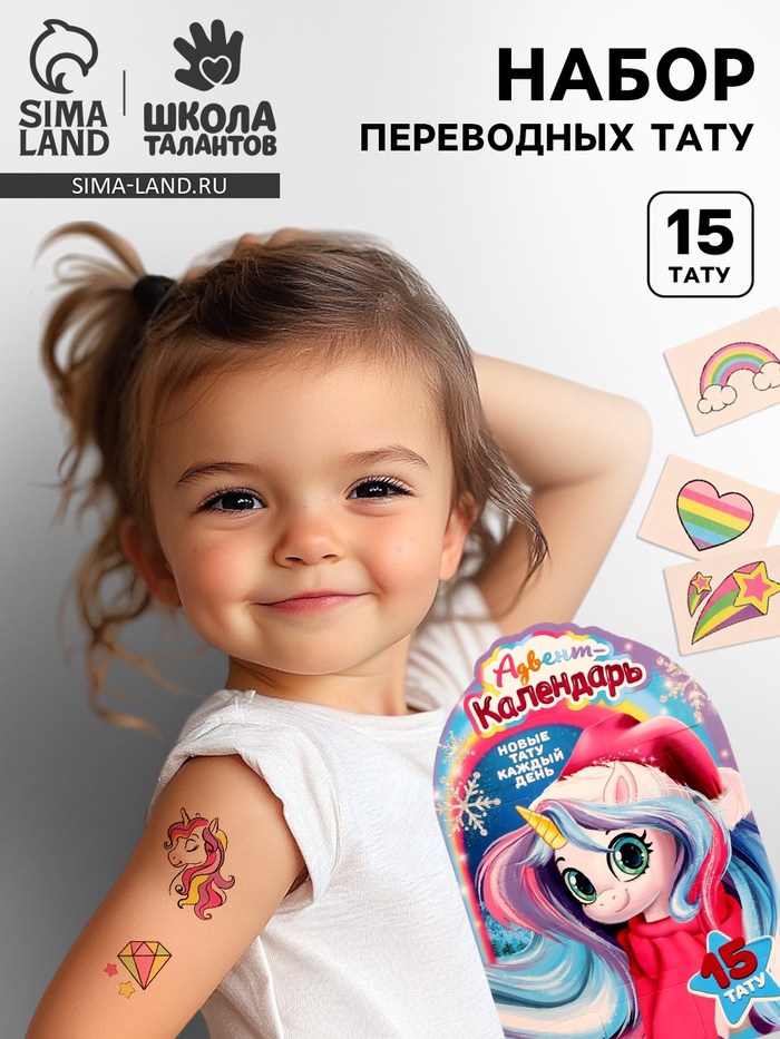 Ваша дочка обожает тату-переводки? Тогда этот адвент-календарь точно её порадует, ведь там есть сюрпризы.