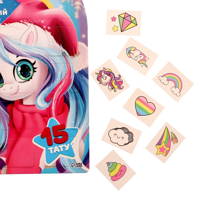 Внутри 15 окошек с татуировками. С ними девочка сможет делать новое тату каждый день!