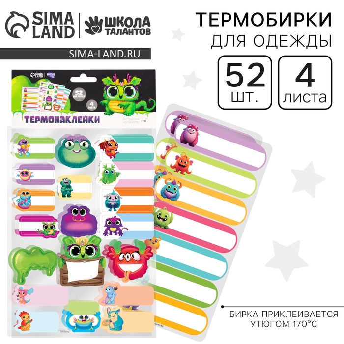 Набор термобирок и наклеек для одежды «Яркие монстрики»