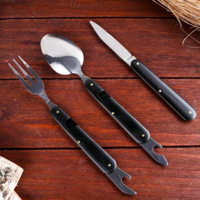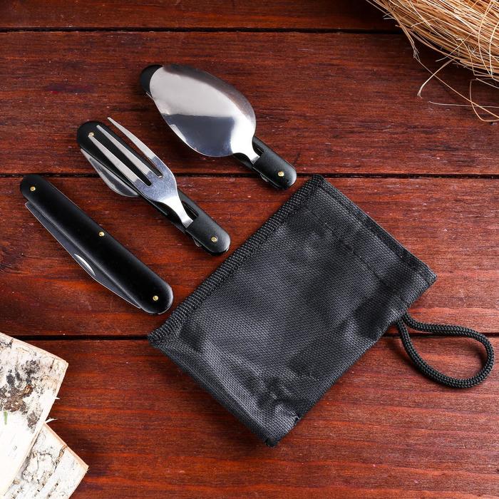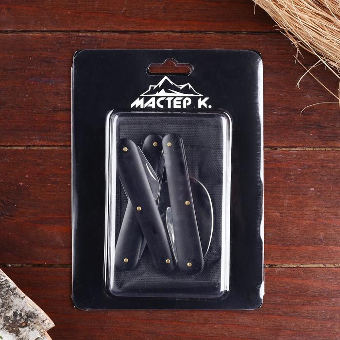 Набор туриста в чехле 5в1 Мастер К, черный неотъемлемая часть любого пикника. Универсальный нож позволит нам с легкостью нарезать фрукты и овощи, открыть банку, бутылочку вина или лимонада, съесть шашлык или любимый десерт. Компактный нож сэкономит в рюкзаке место для более крупных вещей при этом останется востребованным на протяжении всего времени.
