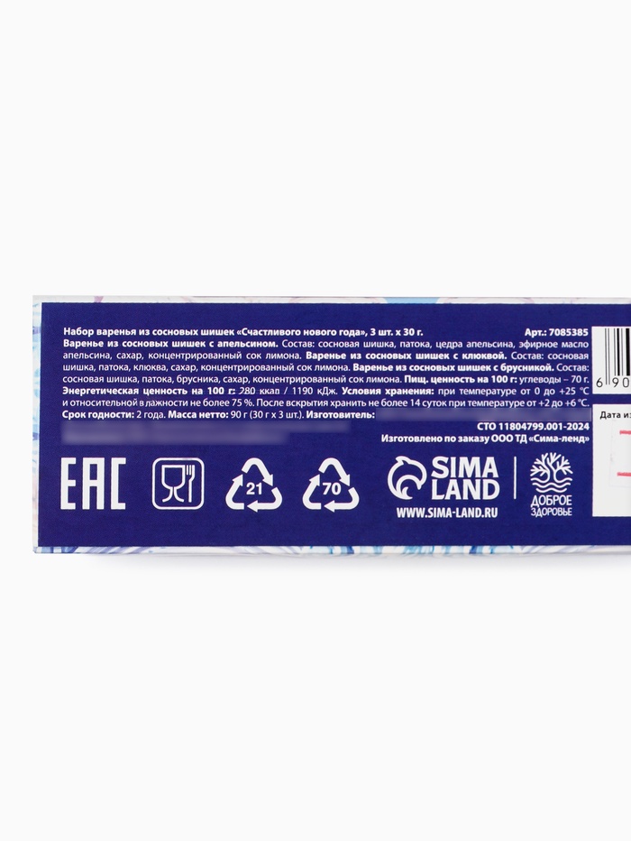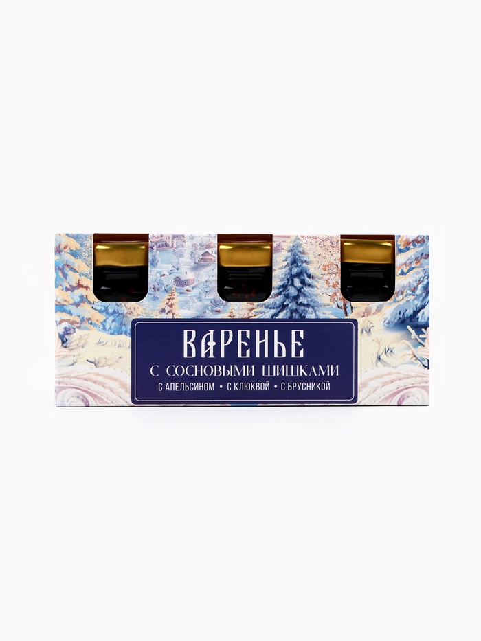 Набор варенья с сосновыми шишками «Счастливого нового года»: апельсин, клюква, брусника, 90 г (3 шт. х 30 г).
