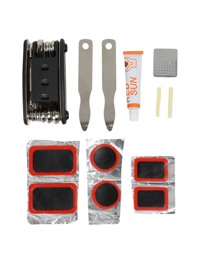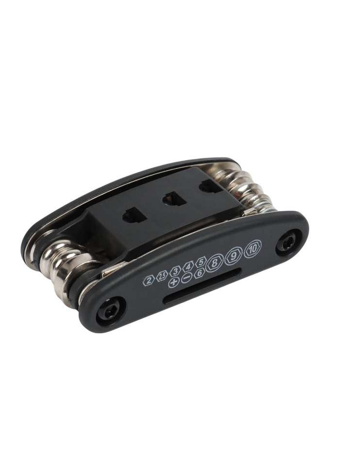 Многофункциональный набор содержит в себе несколько инструментов для ремонта велосипеда. Они особенно пригодятся в поездках на длинные дистанции.