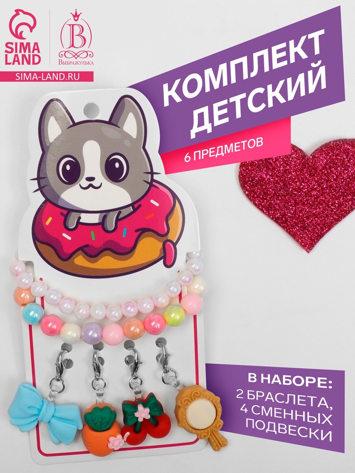 Этот набор детских украшений — идеальный подарок для маленькой модницы! В набор входят различные предметы согласно комплектации и наименованию, может содержать: бусики, кольцо, браслет, клипсы и аксессуары для волос. Яркий дизайн каждого предмета привлечет внимание и добавит индивидуальности любому наряду.