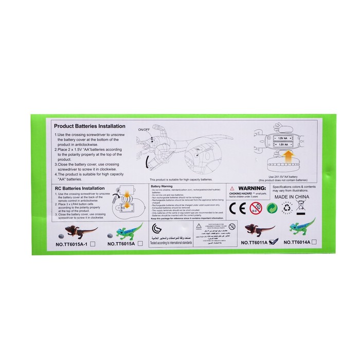 - Самоходная ящерица: ползает по полу как настоящая! Работает от 2 батареек АА (в комплект не входят) — просто вставьте их и наблюдайте, как рептилия «оживает».