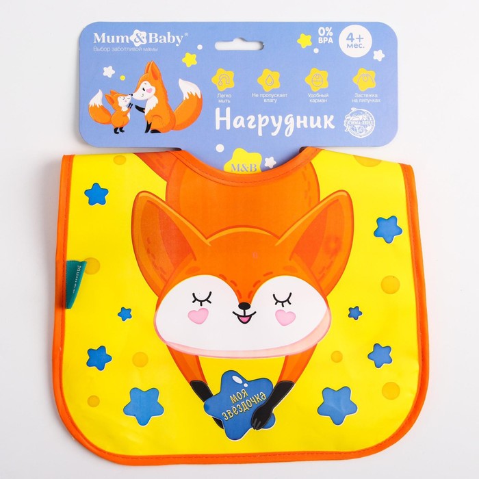 Товар изготовлен из материалов, не содержащего токсичных веществ. После использования мойте тёплой мыльной водой. Нагрудник рекомендован для детей старше 4 месяцев.