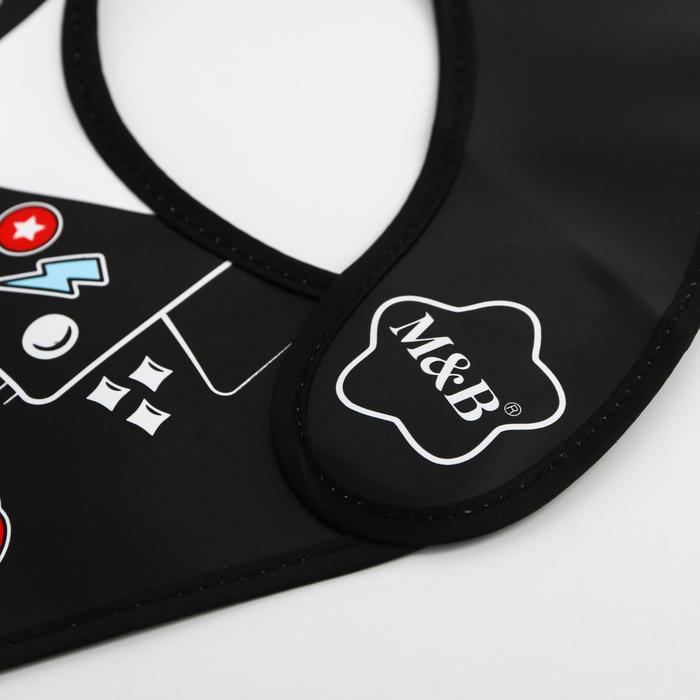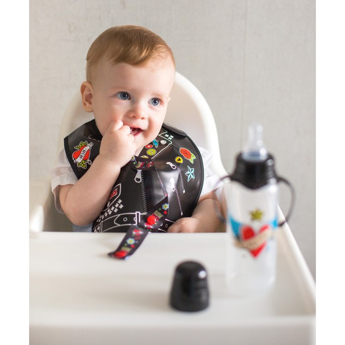 Нагрудник не промокает и качественно защищает, поэтому одежда малыша не испачкается в процессе кормления. У слюнявчика есть специальный кормашек, который выворачивается на лицевую сторону на время приема пищи, в него попадают все крошки: чистым останется не только сам ребёнок, но и место, где он кушает.
