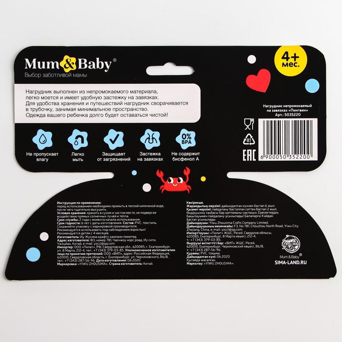 Нагрудник не промокает и качественно защищает, поэтому одежда малыша не испачкается в процессе кормления.
