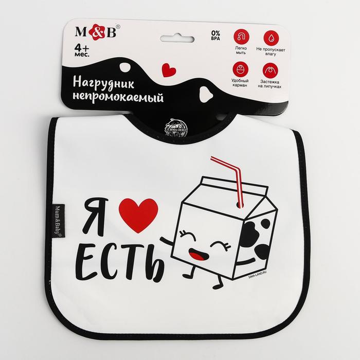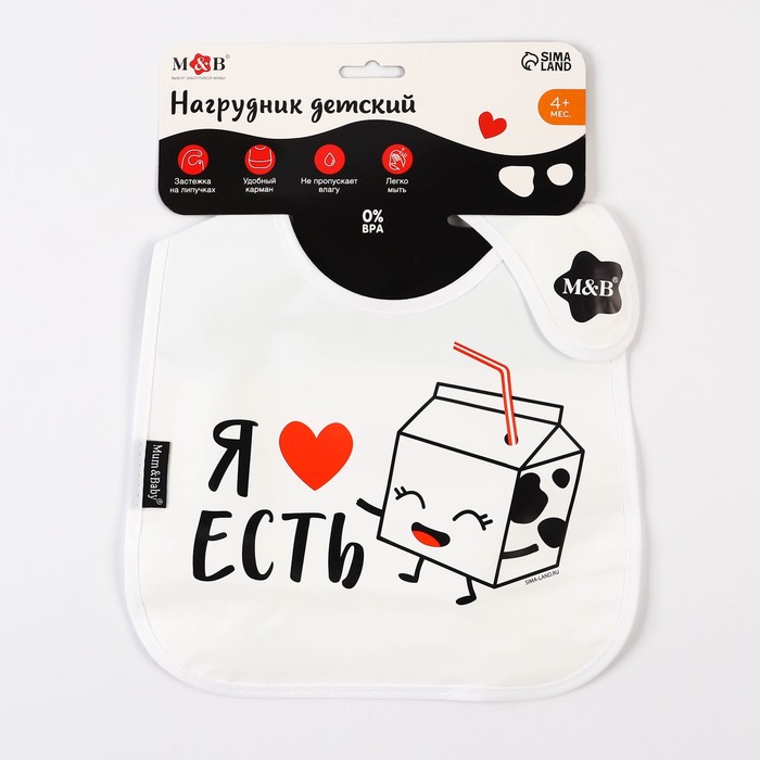 Нагрудник не промокает и качественно защищает, поэтому одежда малыша не испачкается в процессе кормления. У слюнявчика есть специальный кармашек, который выворачивается на лицевую сторону на время приема пищи, в него попадают все крошки: чистым останется не только сам ребёнок, но и место, где он кушает.