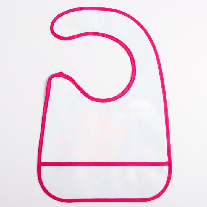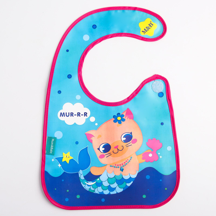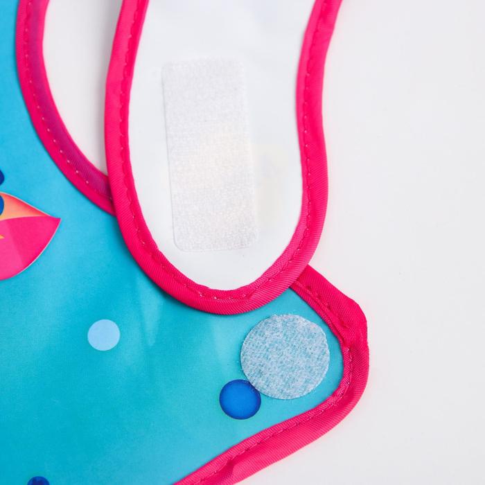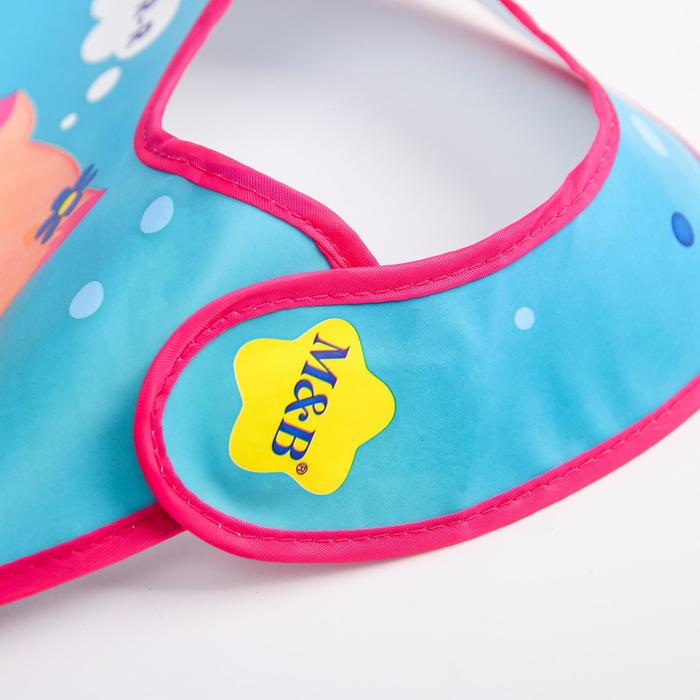 Нагрудник не промокает и качественно защищает, поэтому одежда малыша не испачкается в процессе кормления. У слюнявчика есть специальный кормашек, который выворачивается на лицевую сторону на время приема пищи, в него попадают все крошки: чистым останется не только сам ребёнок, но и место, где он кушает.