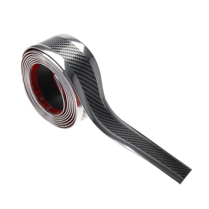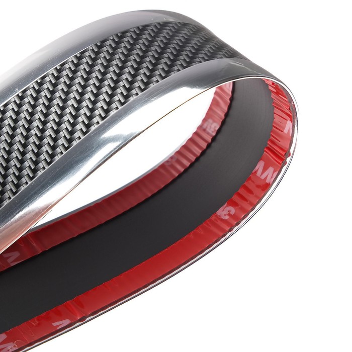 Накладка на пороги авто TORSO, цвет карбон с хромированной полосой, самоклеящаяся, 5×250 см