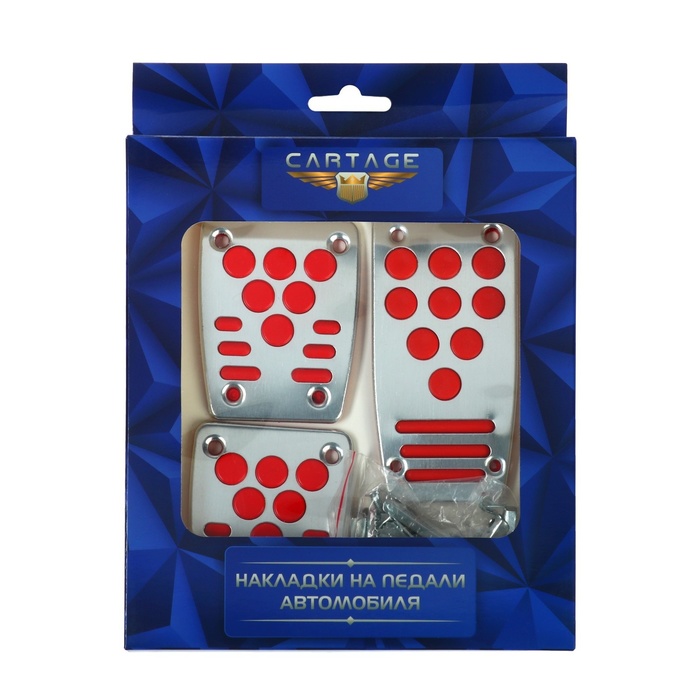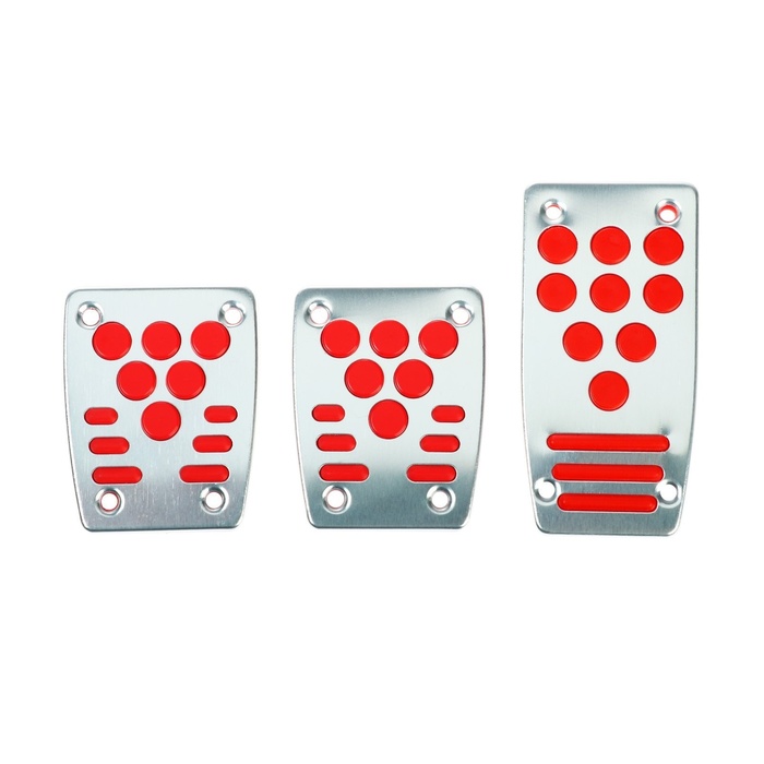 Накладки на педали CARTAGE, антискользящие, набор 3 шт. серебристо-красный