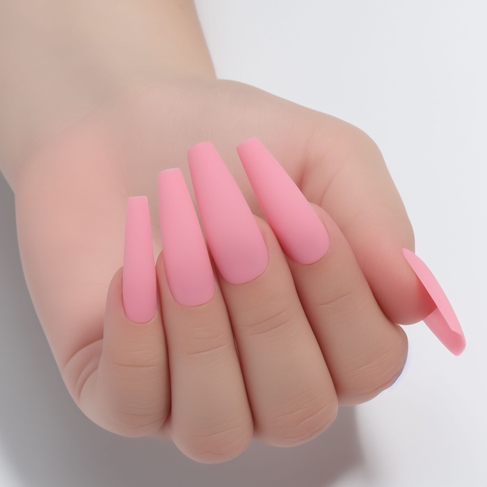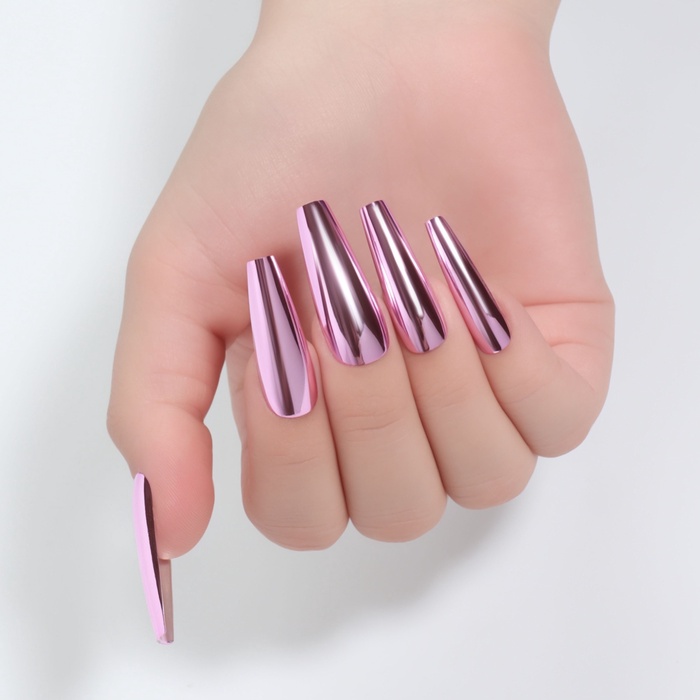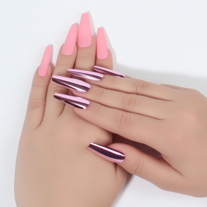 Накладные ногти, 12 шт, с клеевыми пластинами, форма балерина, матовый/хромированный, цвет розовый