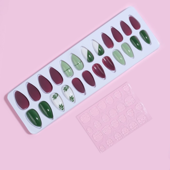 В наборе с накладными ногтями идут клеевые пластины. За счёт этого уменьшается вероятность механического травмирования природного ногтя. Клеевые пластины безопасны в применении и не вредят натуральным ногтям, в отличие от клея. Клей содержит составе высокую токсичность, что может сказаться на вашем организме.