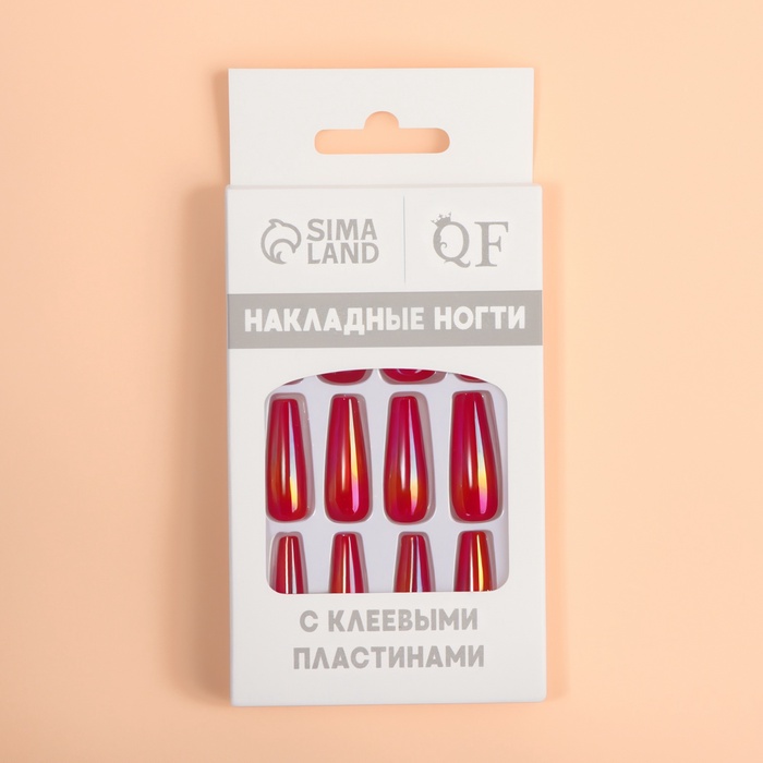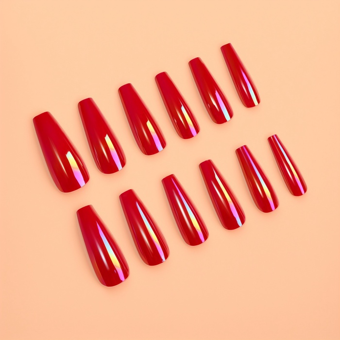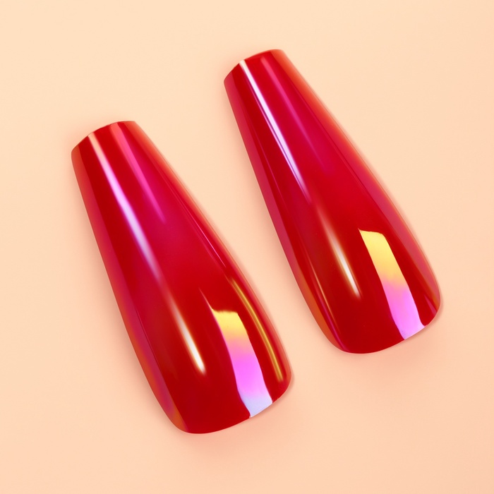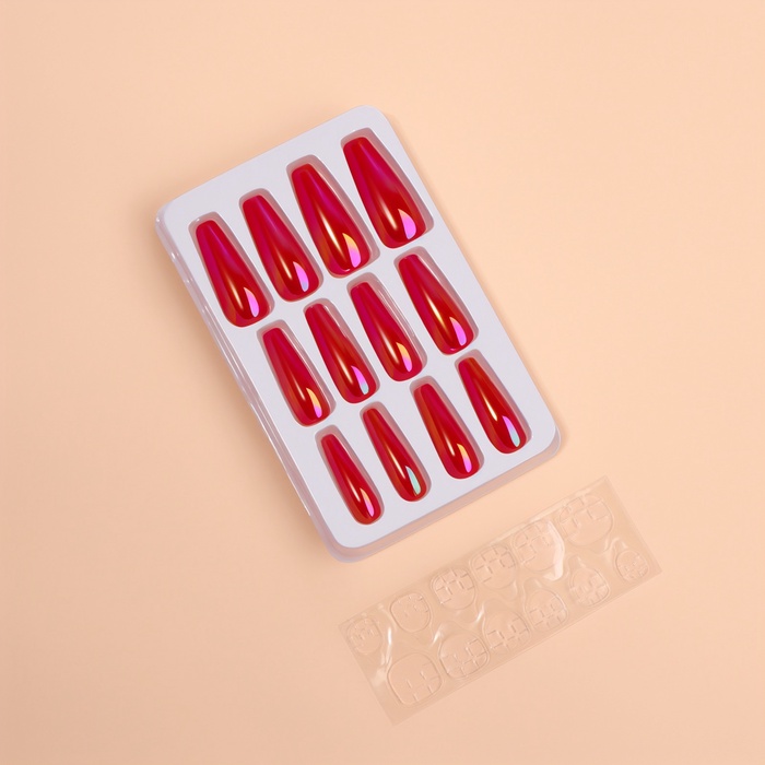 Накладные ногти «Перламутр», 12 шт., с клеевыми пластинами, форма балерина, красные