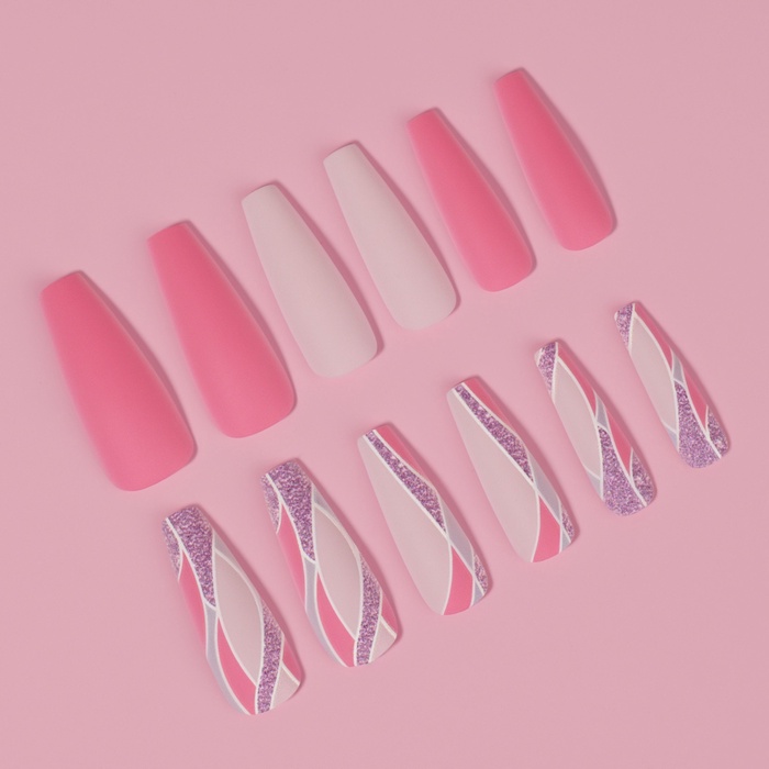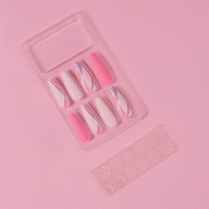 Накладные ногти «Розовое настроение», 12 шт., с клеевыми пластинами, форма балерина, разноцветные