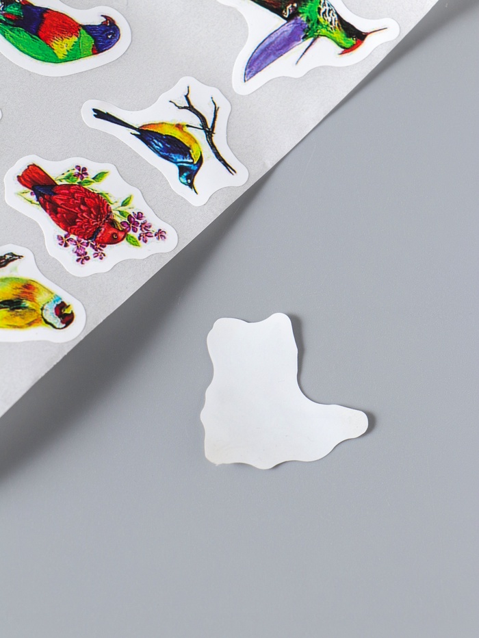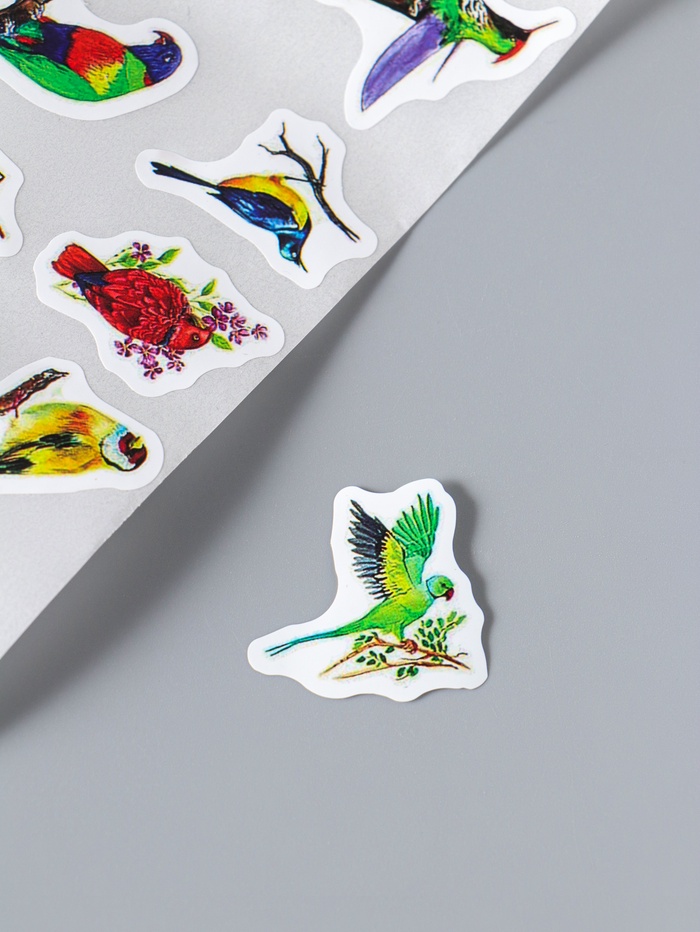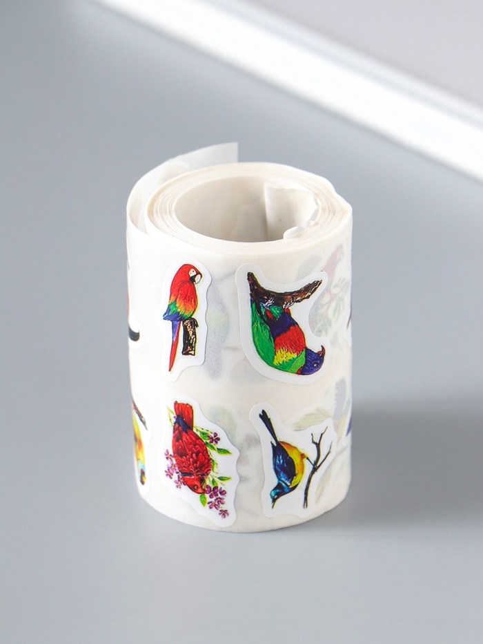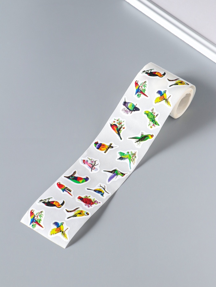 Наклейка бумага "Экзотические птицы" d=2,5 см 500 шт в рулоне 3х6,5х6,5 см