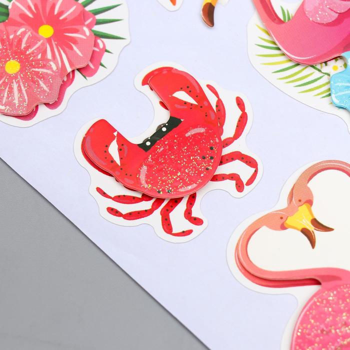 Наклейка бумага "Фламинго и тропики" 28,5х10,5 см
