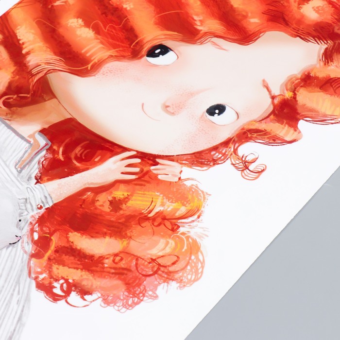 Наклейка интерьерная цветная «Девочка с рыжими волосами с зайчатами», 30×90 см
