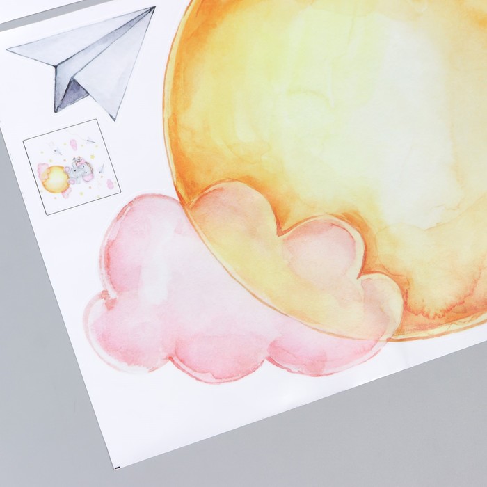 Наклейка интерьерная цветная «Слонёнок с самолётом», набор 2 листа, 30×60 см