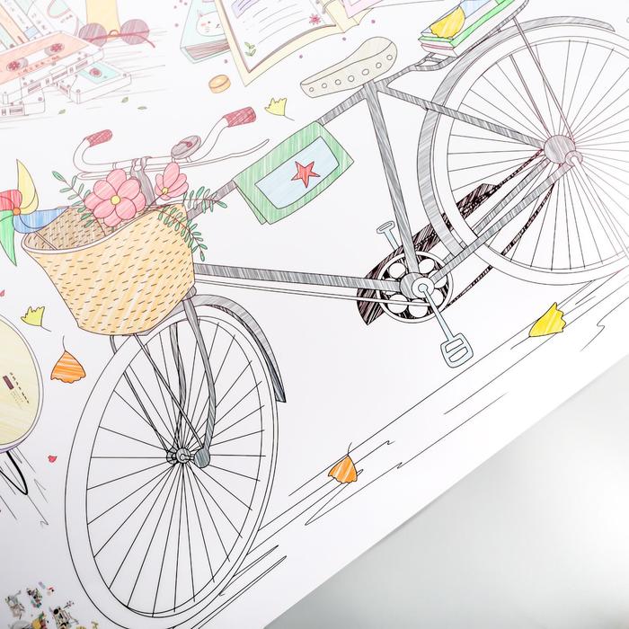 Наклейка интерьерная цветная «Велосипед, магнитофон и фотоаппарат», 60×90 см