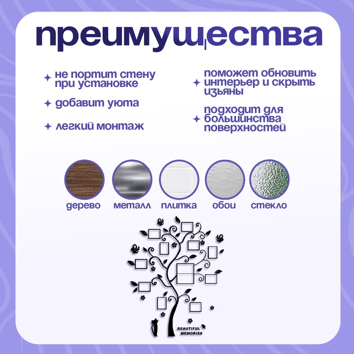 Настенные наклейки изготовлены из высококачественного акрила. Это долговечный, безопасный, влагостойкий и неприхотливый в уходе материал. Наклейки подходят для декора интерьера дома, офиса, магазина. Их используют, чтобы освежить или дополнить интерьер, скрыть дефекты на стене, в качестве безопасной и оригинальной альтернативы зеркалу.